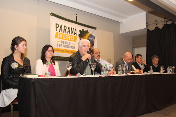 Com o objetivo de propor um novo projeto para o país por meio da organização da sociedade, com bases para um novo marco civilizatório do Brasil, na sexta-feira (28) foi lançada em Curitiba, Paraná, a ideia da constituição de uma Frente Nacional Popular e Democrática, no auditório do Hotel Bourbon. Cerca de 300 pessoas de movimentos sindicais, sociais e estudantil das mais diversas categorias participaram da cerimônia, em que também foi aprovada a Carta de Curitiba, que explicita as principais diretrizes da frente.